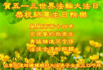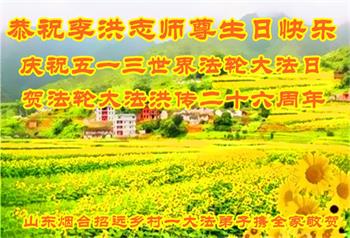 山東省濰坊市壽光市農村多名大法弟子恭賀世界法輪大法日!恭祝師尊生日快樂!
