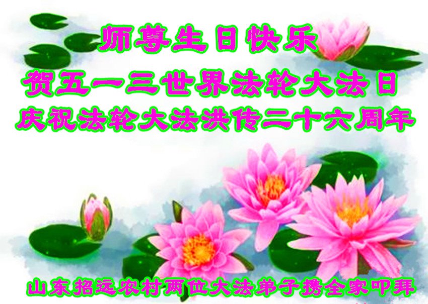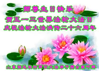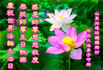 山東煙台招遠玲瓏鎮鄉村兩位大法弟子恭祝師尊生日快樂!