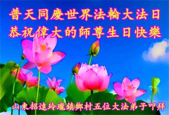 山東煙台招遠鄉村五位大法弟子恭祝師尊生日快樂!