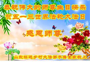 山東煙台招遠玲瓏鎮鄉村兩位大法弟子叩拜師尊!恭祝師尊生日快樂!