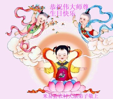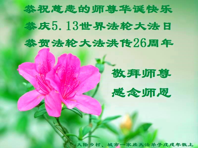 大陸鄉村、城市一家族大法弟子恭祝慈悲偉大的師尊華誕快樂!