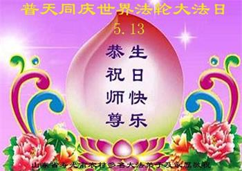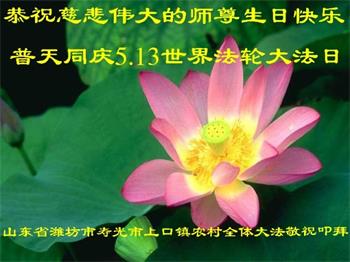 山東省濰坊市壽光市上口鎮農村全體大法弟子恭賀世界法輪大法日!恭祝師尊生日快樂!