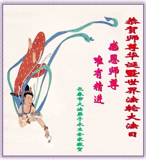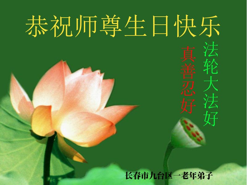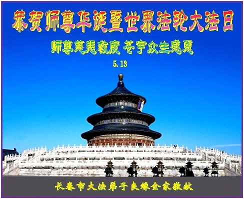 正值師父傳法二十六週年,又是師父華誕之日,我們長春一學法小組向偉大的師尊問候、祝願!我們一定按照師父的要求學好法、向內找、做好三件事,完成歷史使命,救更多的眾生,跟師父圓滿回家。