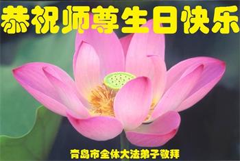 山東省青島市全體法輪大法弟子恭祝慈悲偉大的師尊生日快樂!
