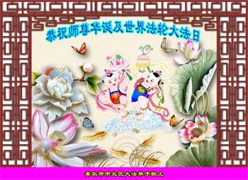 青島大法弟子恭賀世界法輪大法日暨師尊華誕(22條)