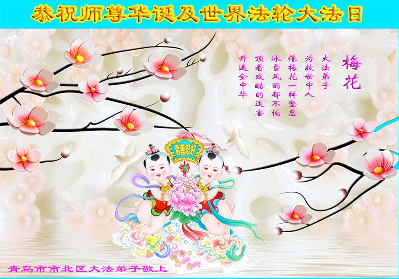 山東青島市北區大法弟子恭祝師尊生日快樂!及世界法輪大法日!