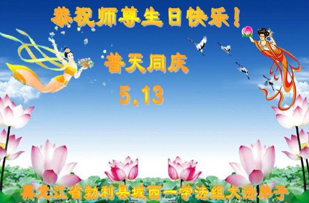 黑龍江省七台河市勃利縣城西一學法小組大法弟子恭祝慈悲偉大的師尊生日快樂!慶賀5.13世界法輪大法日!