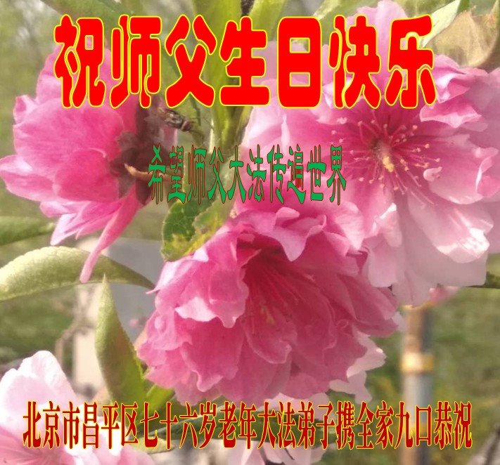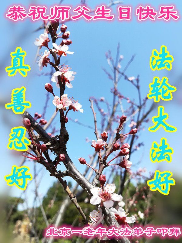 北京一老年大法弟子恭祝慈悲偉大的師父生日快樂!