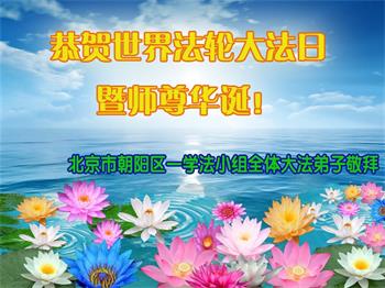 北京市朝陽區一學法小組全體大法弟子恭賀法輪大法日