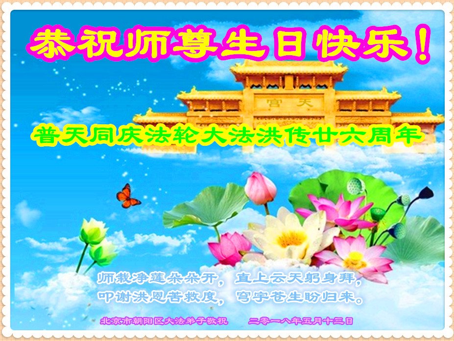 北京市朝陽區大法弟子恭祝師尊生日快樂!普天同慶法輪大法洪傳廿六週年!