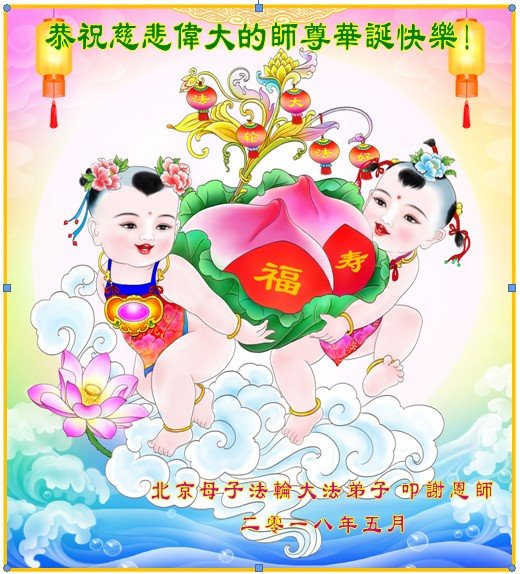 北京母子法輪大法弟子恭祝師尊六十七歲華誕快樂!慶祝世界法輪大法日!全世界同慶同頌法輪大法洪傳二十六週年!