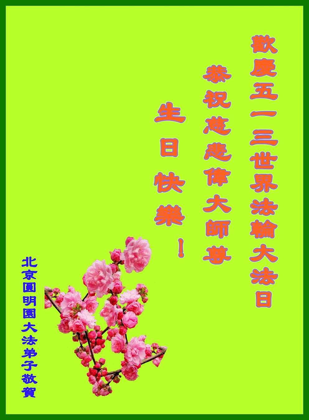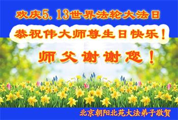 值此五一三世界法輪大法日之際,謹代表北京地區大法弟子向師尊送上最誠摯的祝願:師父生日快樂!
