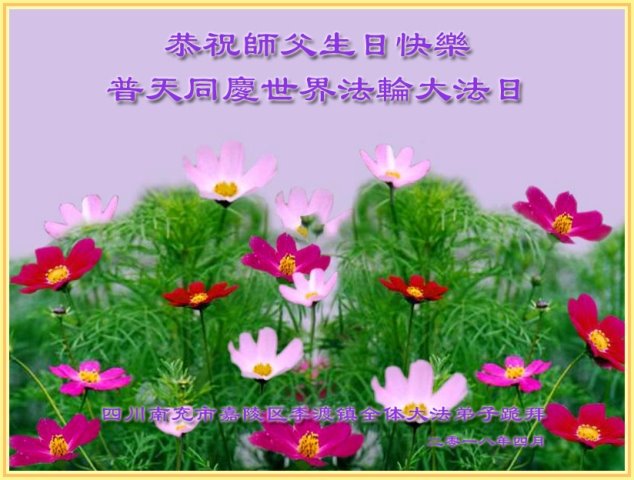 四川南充市嘉陵區李渡鎮全體大法弟子跪拜恭祝師父生日快樂!普天同慶世界法輪大法日!