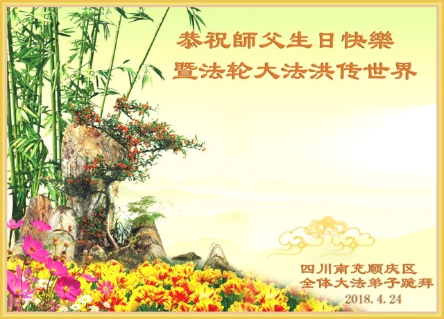 四川南充順慶區全體大法弟子跪拜恭祝師父生日快樂!暨法輪大法洪傳世界!