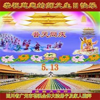 四川廣元蒼溪全體大法弟子恭祝慈悲偉大的師尊生日快樂!
