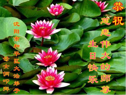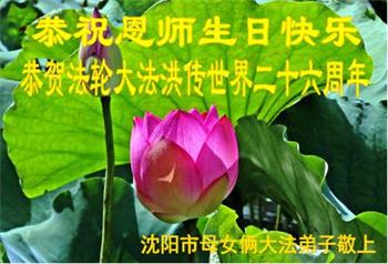 遼寧省瀋陽母女倆大法弟子恭祝恩師生日快樂!