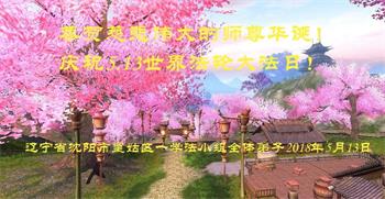 遼寧省瀋陽一學法小組大法弟子恭祝偉大師尊生日快樂!並慶祝世界法輪大法日!