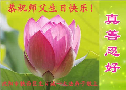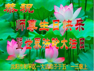 遼寧省瀋陽市鐵西區一家大法弟子恭祝師尊生日快樂!慶祝世界法輪大法日!