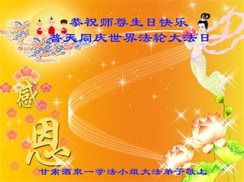 甘肅酒泉肅州區大法弟子恭祝師父生日快樂!恭賀法輪大法日!感恩師尊!