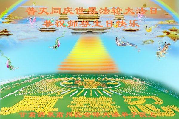 甘肅酒泉肅州區大法弟子恭祝師父生日快樂!慶祝世界法輪大法日!