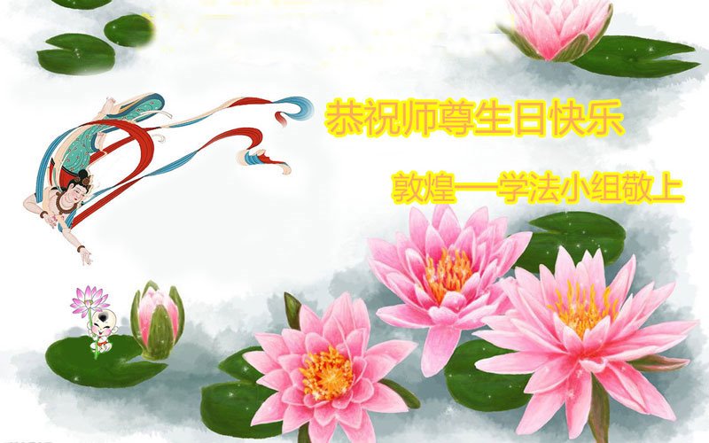 甘肅省酒泉市敦煌市一學法小組大法弟子恭祝師尊生日快樂!普天同慶世界法輪大法日!