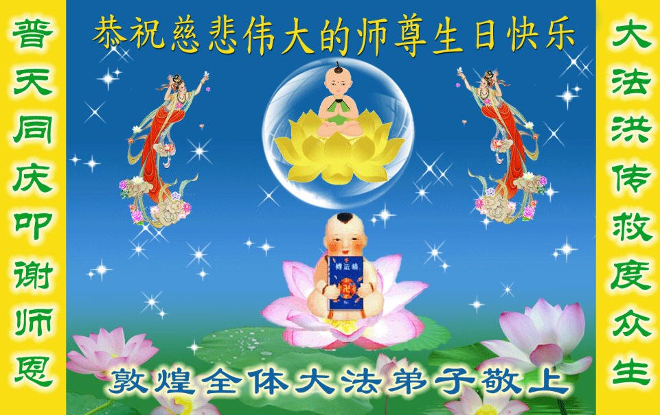 甘肅省酒泉市敦煌市在大法中受益弟子家人恭祝師尊生日快樂!普天同慶世界法輪大法日!