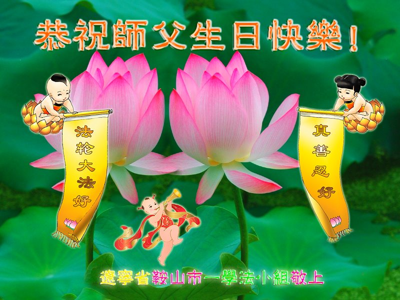 遼寧省鞍山市鐵東區一學法小組大法弟子恭祝師父生日快樂!
