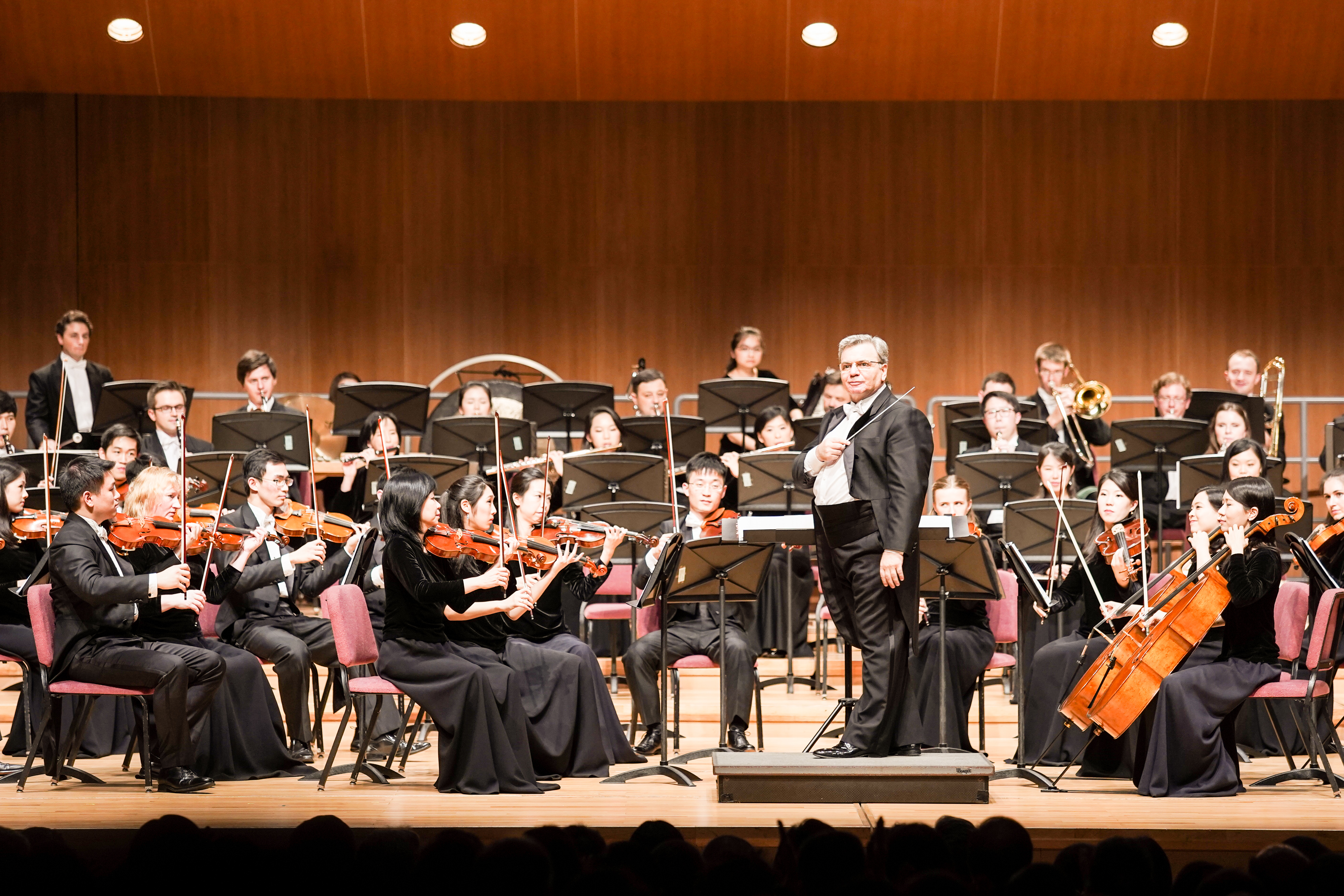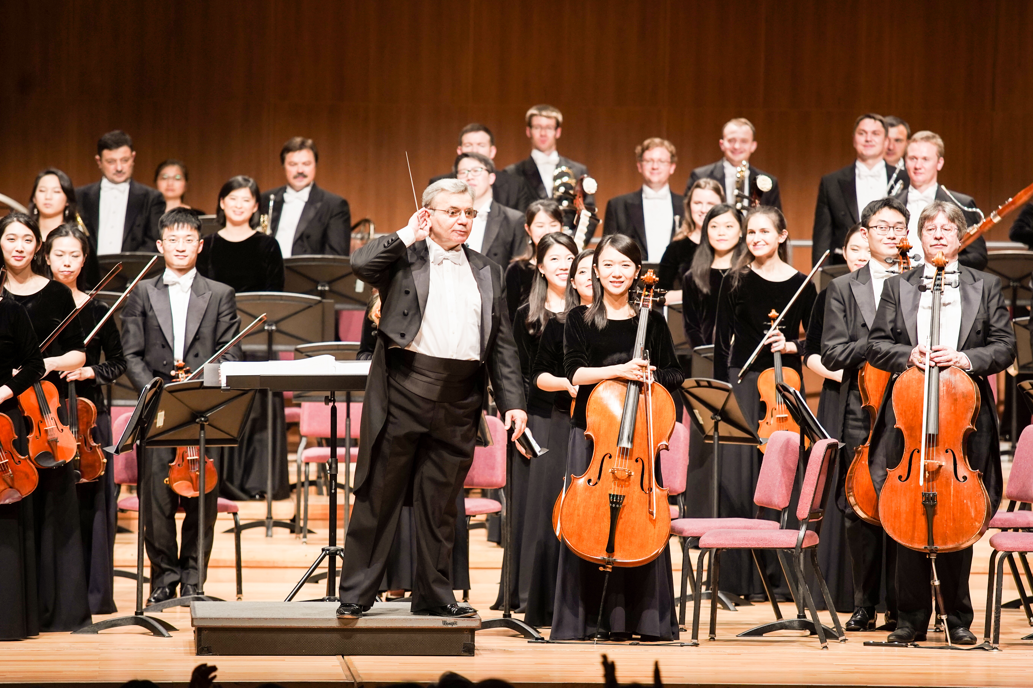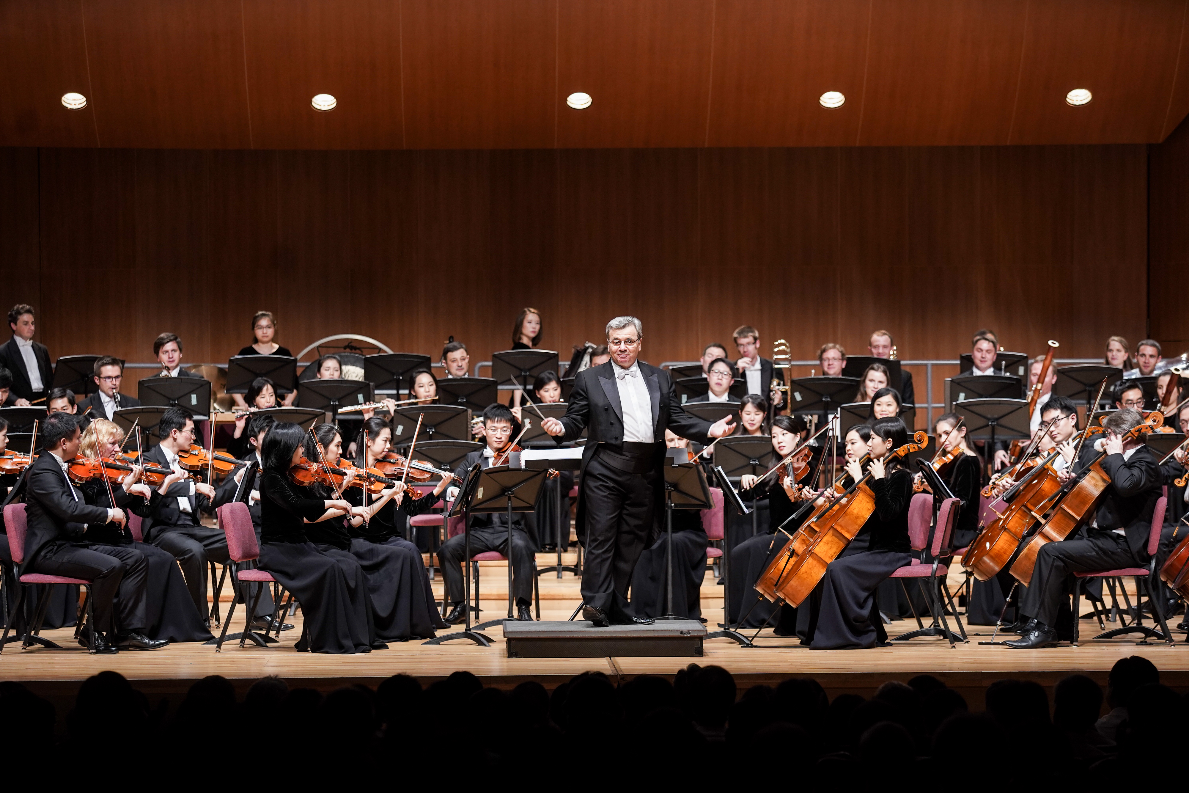 ![]() 圖2:二零一八年九月十九日晚,神韻交響樂團於台北中山堂舉行演出。演出中,指揮米蘭‧納切夫不但指揮台上樂團的演奏,不時也指揮著台下的觀眾,與台上的互動。 |