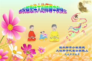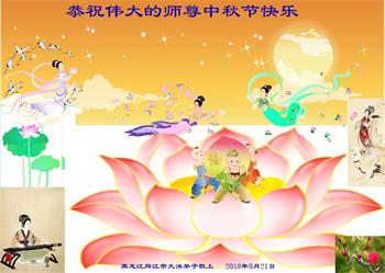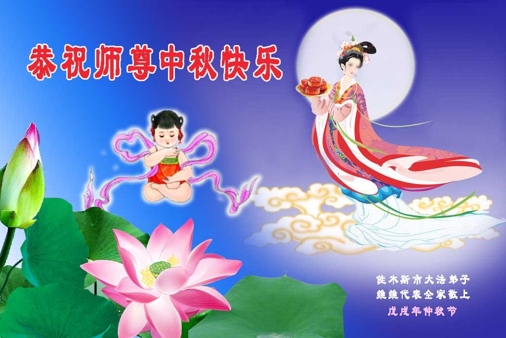 慈悲的師尊您好!師尊您辛苦了!今年的中秋節到了,我們小組都是中老年大法弟子,是師尊正法的萬古機緣將我們緊緊的聯繫在一起的。我們無比珍惜我們的聖緣。互相提醒,互相幫助,珍惜師尊用巨大的付出和承受為弟子延續來的寶貴時間。我們一定多學法,淨心學法,遇事向內找,修好自己,多救人,用實際行動迎接師尊回大陸,和師尊一起回家。