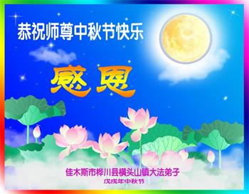 黑龍江省佳木斯市樺川縣橫頭山鎮大法弟子恭祝師尊中秋快樂!