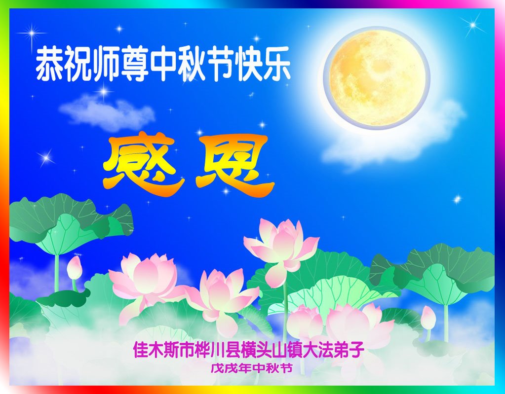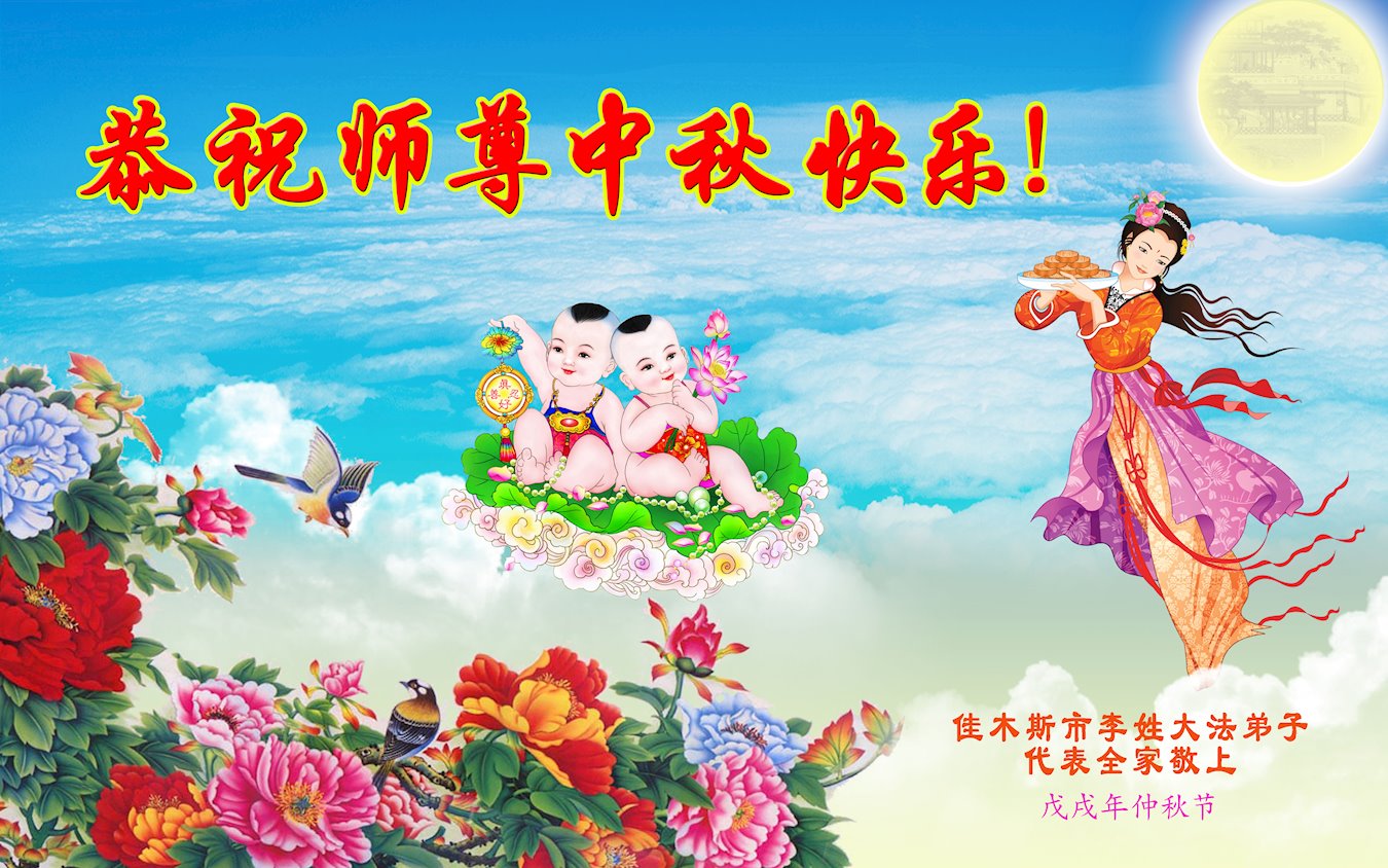 黑龍江省佳木斯大法弟子小敏婆媳大法弟子代表全家敬上恭祝師尊中秋快樂!