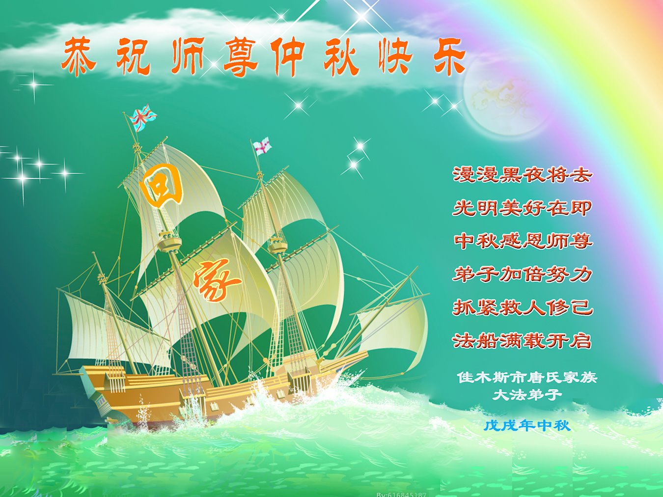 黑龍江省佳木斯唐氏家族大法弟子恭祝師尊中秋快樂!