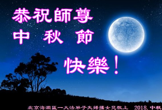 師父您好!您辛苦了!中秋節快到了,弟子們想念您。我們一家三位大法弟子及家人恭祝慈悲偉大的師父中秋節快樂!