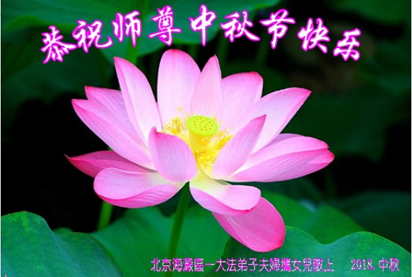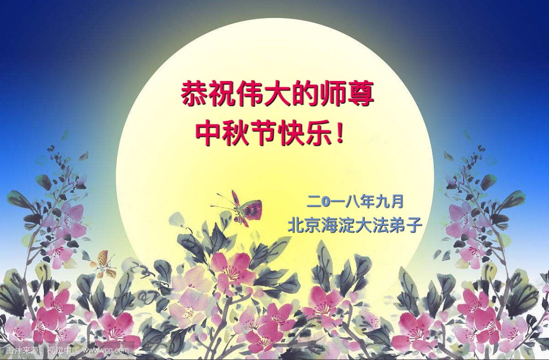 北京海澱區大法弟子及明真相親屬恭祝慈悲偉大的師尊中秋快樂!我們一定在正法修煉的路上,在遇到的每一件事情中修自己,時刻記住自己是大法弟子,記住大法弟子的使命是助師正法、救度眾生,擺正與世人的關係,就是救度與被救度的關係。在修去各種執著心,提高心性的同時慈悲對待眾生、救度眾生!感恩師尊用巨大的付出延續時間給予眾生選擇未來的機會!感恩師尊對大法弟子與眾生的慈悲救度!叩謝師尊!