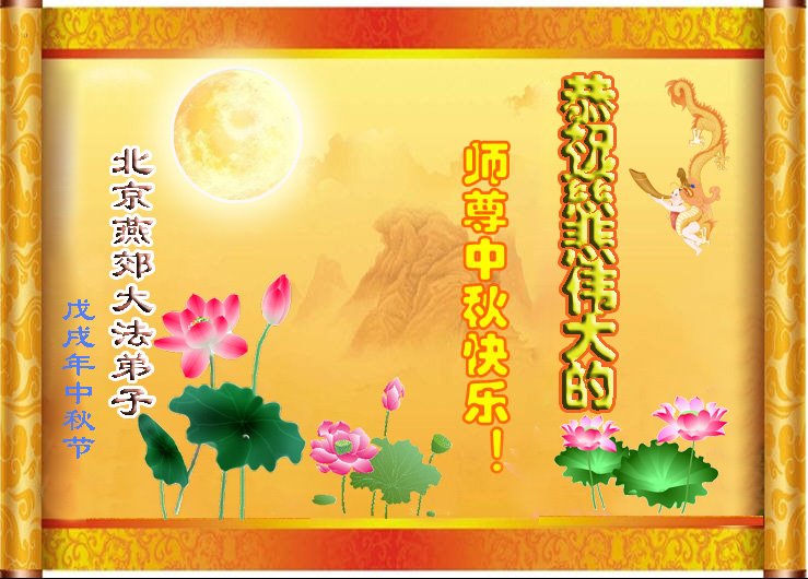 北京大法弟子恭祝慈悲偉大的師尊中秋節快樂!