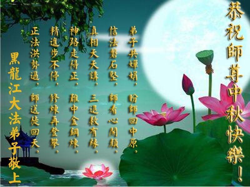 黑龍江哈爾濱資料點大法弟子恭祝師尊中秋快樂!