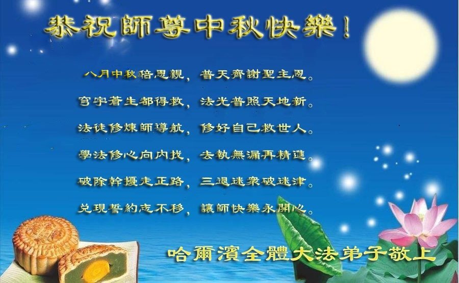 黑龍江哈爾濱全體大法弟子恭祝師尊中秋快樂!