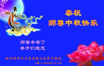 黑龍江省哈爾濱市木蘭縣全體大法弟子恭祝師尊中秋節快樂!