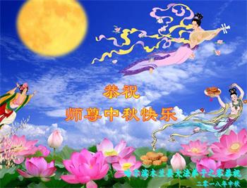 一年一度的中秋佳節到了,弟子們道一聲:師尊您辛苦了!明月萬里寄相思,弟子們想念師尊,盼望師尊早日回到中國大陸。由於弟子們沒有做到真正的同化大法,所以出現了很多不該有的修煉狀態。弟子們今後一定要認真對待學法,向內找,同化大法,救度更多的世人與眾生。最後弟子們再一次恭祝師尊中秋佳節快樂!