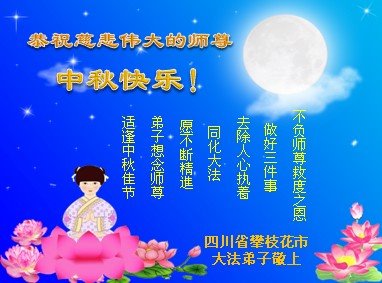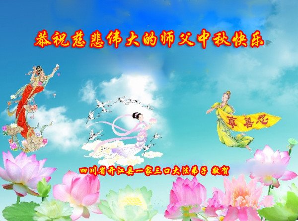 四川資陽市雁江區一大法弟子全家恭祝師父中秋快樂!謝謝師父對我們一家的呵護!