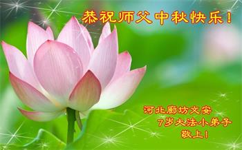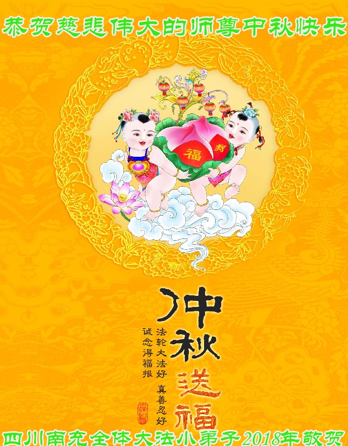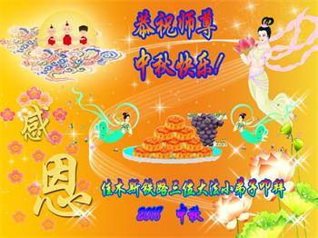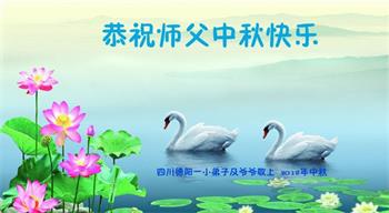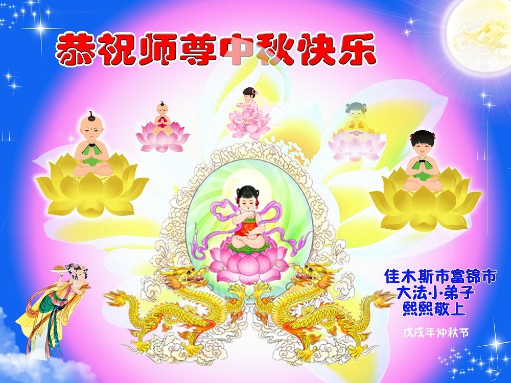 師尊好!師尊辛苦了!我和妹妹恭祝師尊中秋快樂!我奶奶說我們姐妹進步了。我今年九歲,妹妹六歲,我上四年級,妹妹上一年級。我能背《洪吟》、《論語》,妹妹能背《洪吟》四十多首了、《論語》能背第一段。《洪吟》二、三、四我們都能背一些,我們也堅持發正念。9月16日我校主辦開學典禮,在典禮上首先升邪黨旗,廣播裏播邪黨歌,我就發正念讓它滅,讓旗升不上去,結果旗子升了一會兒不升了。大家都笑了(六個年級,五十多班近三千人),我知道正念起作用了。我好高興 ,奶奶說:只管做不要起歡喜心。我一定聽師父的話,做一個真正的大法小弟子。
