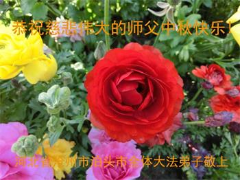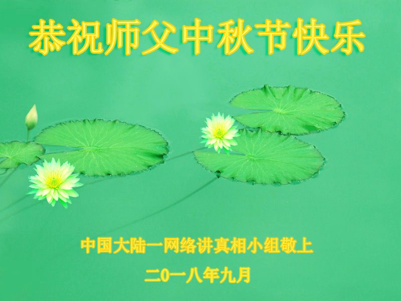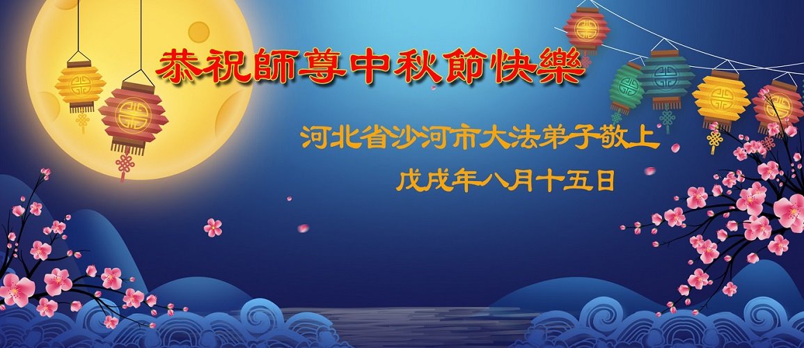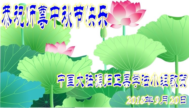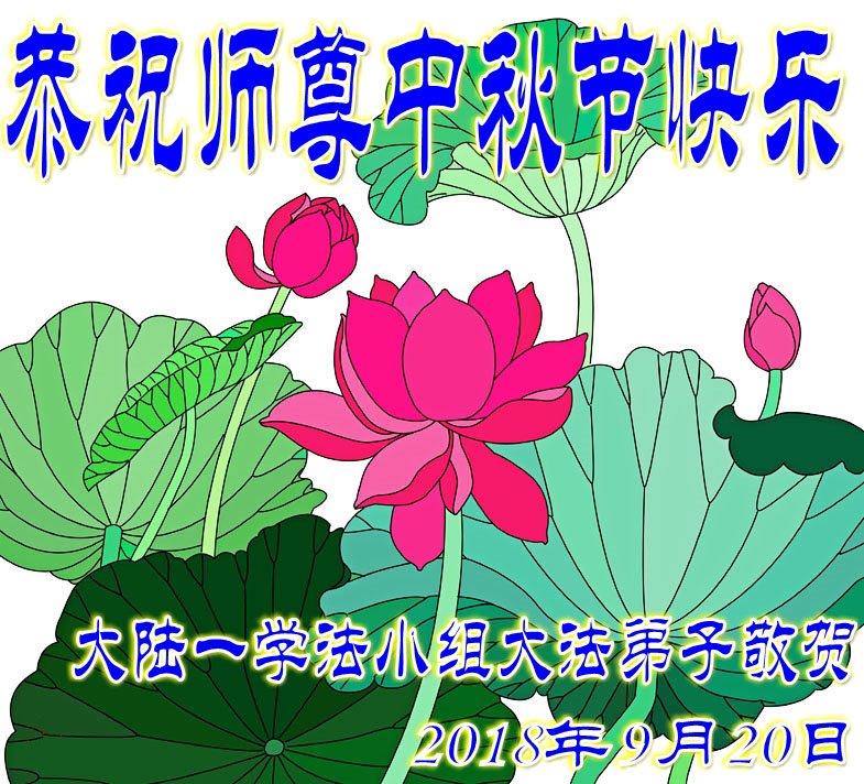 恭祝師尊中秋節快樂!健康!請師父放心!在滾滾洪流中,弟子們一定逆流而上,一正壓百邪!只做大法弟子該做的事,圓容好整體,不搞間隔,為救眾生做好我們的項目,盡心盡力按法的要求做。做師父的真修弟子,讓師父少操心,多欣慰!不辜負師父的慈悲苦度,早日隨師父回家!