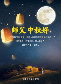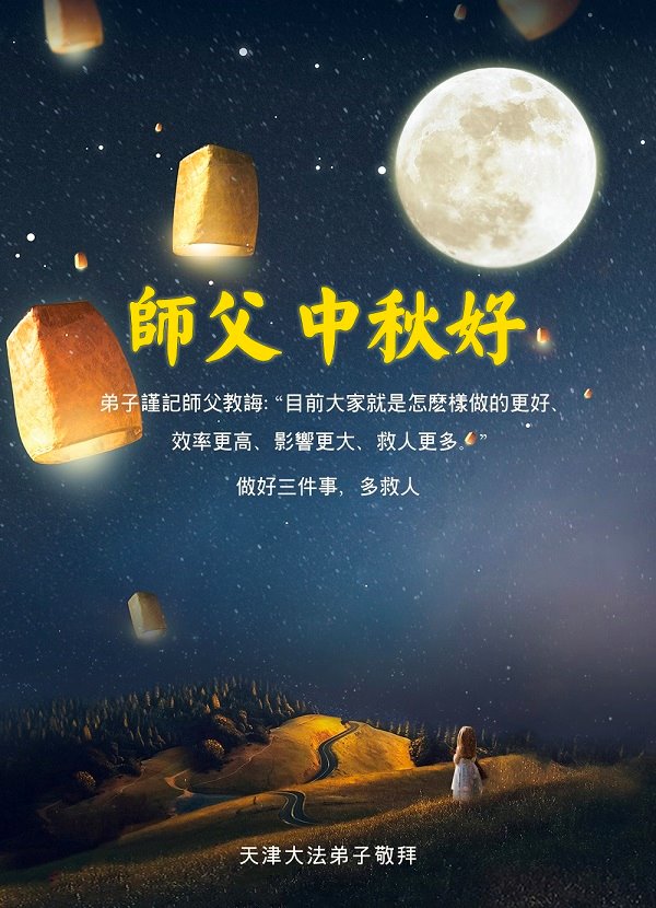 師父您好,中秋節到了,天津大法弟子想念師尊,弟子們遙祝師尊中秋節快樂!