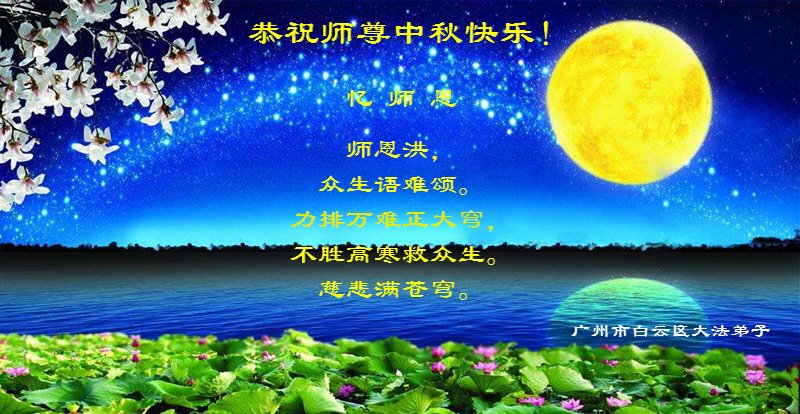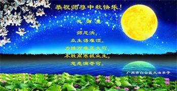 謹代表廣州市荔灣區一學法小組大法弟子恭祝師尊中秋快樂!感謝師尊慈悲苦度!