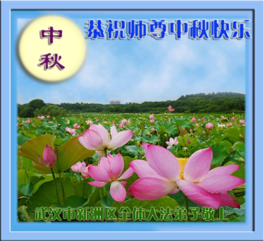 湖北省武漢市新洲區陽邏街一老年學法小組全體大法弟子恭祝慈悲偉大的師尊中秋節快樂!