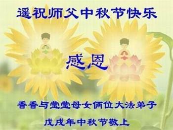 吉林省長春母女倆位大法弟子遙祝師父中秋節快樂!感恩師父救度!