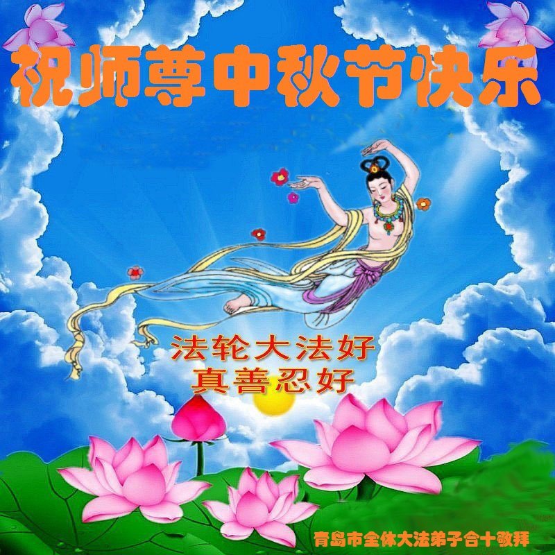 山東省青島大法弟子恭祝慈悲偉大的師尊中秋節快樂!