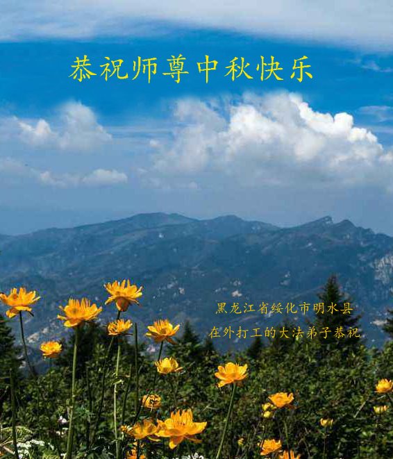 黑龍江省北安市通北地區的大法弟子代表本地區的全體大法弟子恭祝師尊中秋快樂!謝謝師尊!師尊您辛苦了!