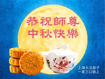 上海大法弟子一家三口恭祝師尊中秋快樂!