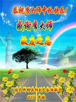 在一年一度中秋佳節這個傳統節日即將到來之際,弟子一家三口和學法小組的大法弟子懷著感恩和崇敬的心情恭祝師尊中秋快樂!